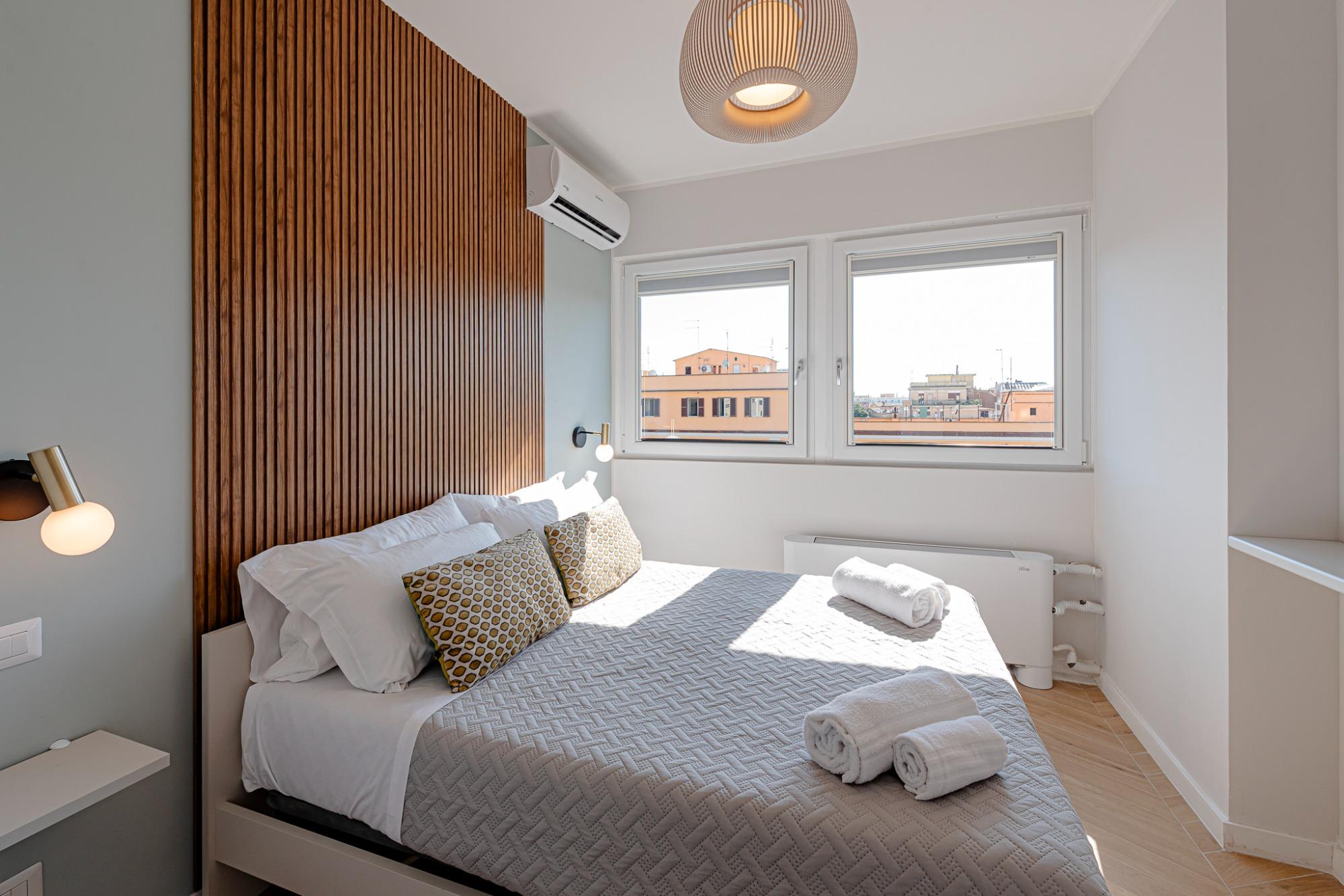 Nel cuore di Roma, questo appartamento accoglie gli ospiti in un ambiente piacevole e luminoso, con una vista esclusiva sulla Basilica di San Giovanni in Laterano. Situato in uno stabile servito da ascensore, è stato recentemente ristrutturato e arredato con gusto moderno ed elegante, offrendo il massimo della funzionalità e del comfort. Gli spazi sono ben distribuiti e comprendono un soggiorno con divano letto, un angolo cottura completamente attrezzato con macchina del caffè, stoviglie ed elettrodomestici, una camera da letto, un corridoio e un bagno separato. L’appartamento dispone inoltre di aria condizionata, riscaldamento sia autonomo che centralizzato, wifi, smart TV e una pratica lavatrice/asciugatrice, ideale anche per soggiorni più lunghi. La posizione è strategica: a soli 150 metri si trova la stazione metro San Giovanni, da cui è possibile raggiungere comodamente il centro storico e il Vaticano. A piedi, il Colosseo dista appena 2 chilometri. Nelle immediate vicinanze sono presenti bar, ristoranti, supermercati, lavanderie e numerosi negozi, garantendo tutto il necessario per un soggiorno pratico e piacevole.